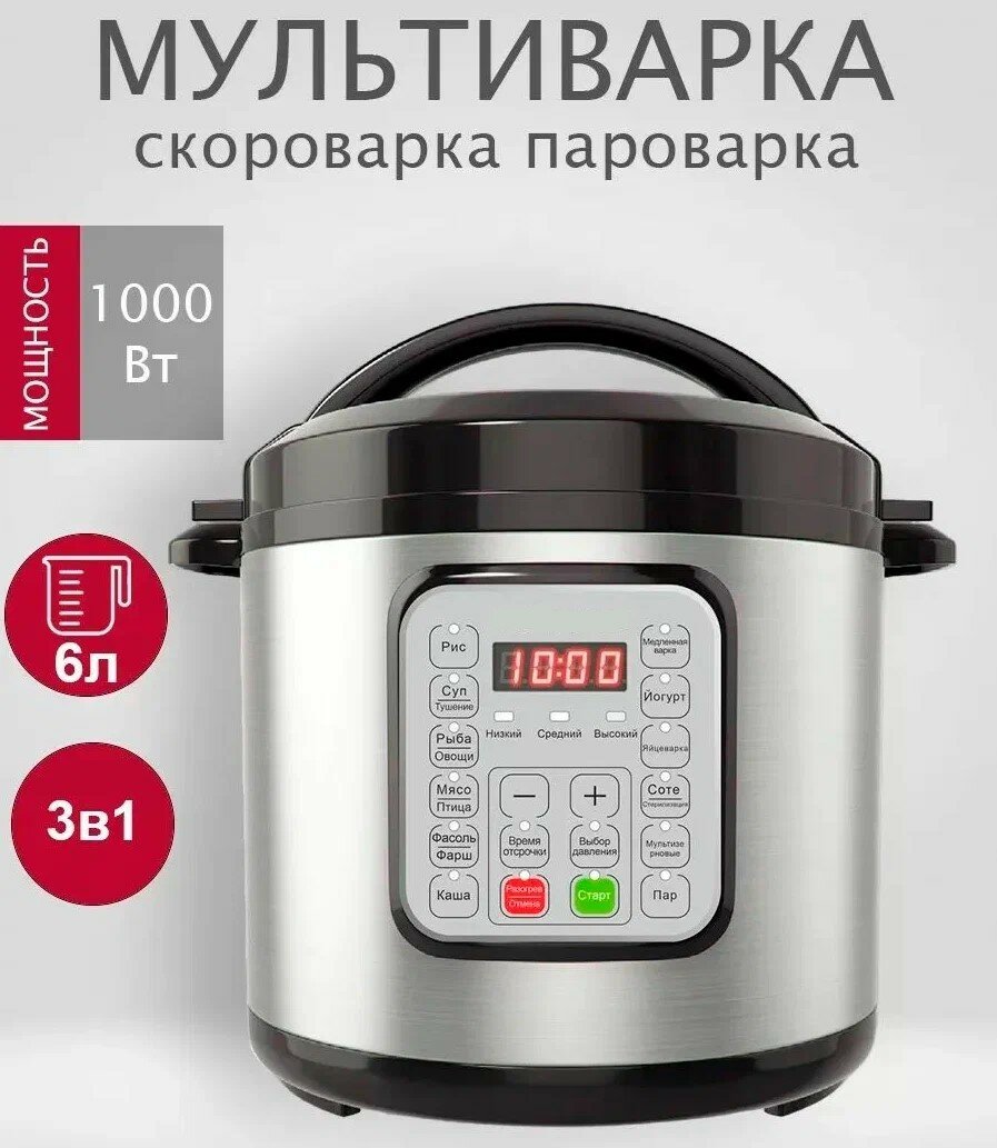 10 цен на Мультиварка скороварка, мультиварка электрическая пароварка, 6 литров, 1000Вт, 12 встроенных программ приготовления, отложенный старт