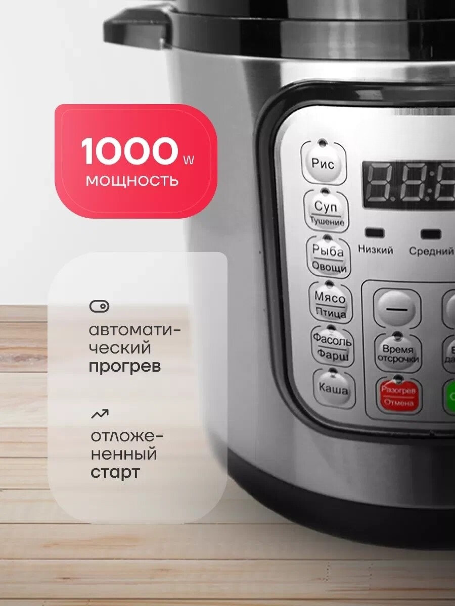 Мультиварка скороварка, мультиварка электрическая пароварка, 6 литров, 1000Вт, 12 встроенных программ приготовления, отложенный старт информация: