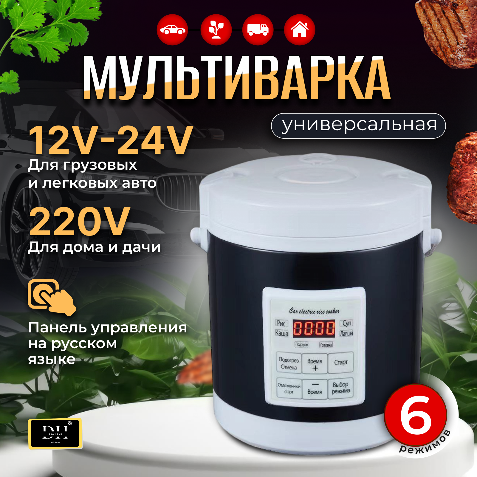 Мультиварка пароварка на 1,3л. в авто/дом универсальная 12-24-220в информация:
