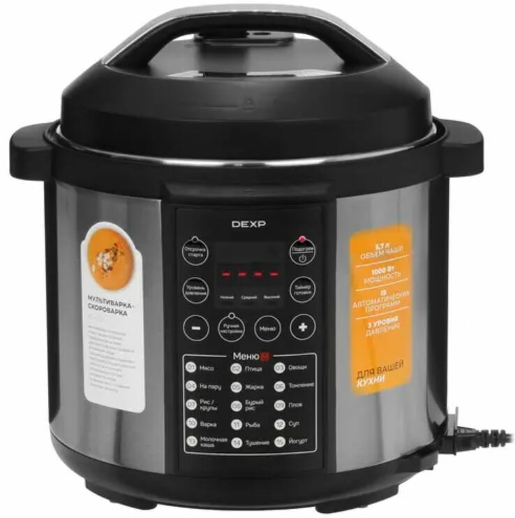 Мультиварка, мультиварка скороварка, DEXP PC-100, серебристый информация: