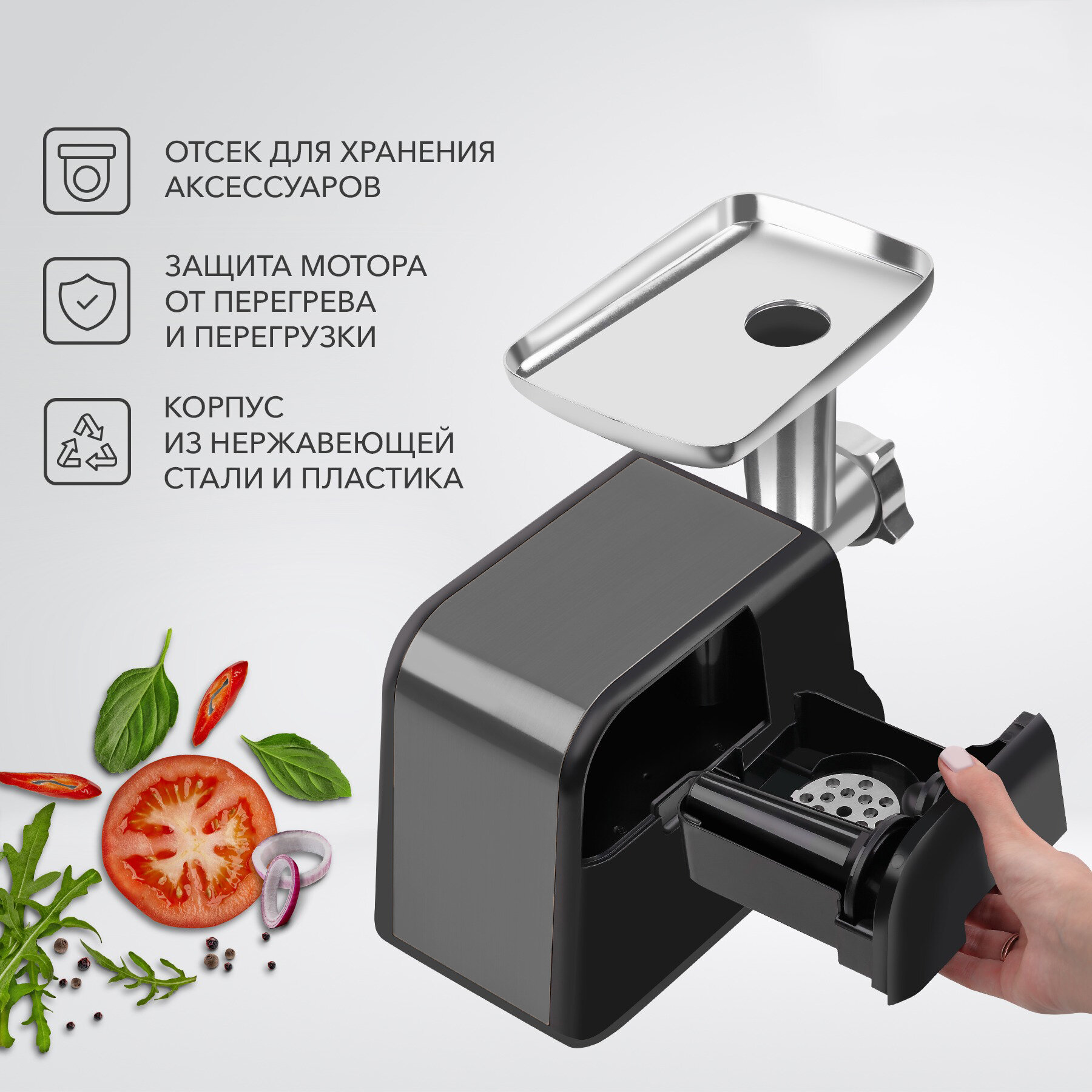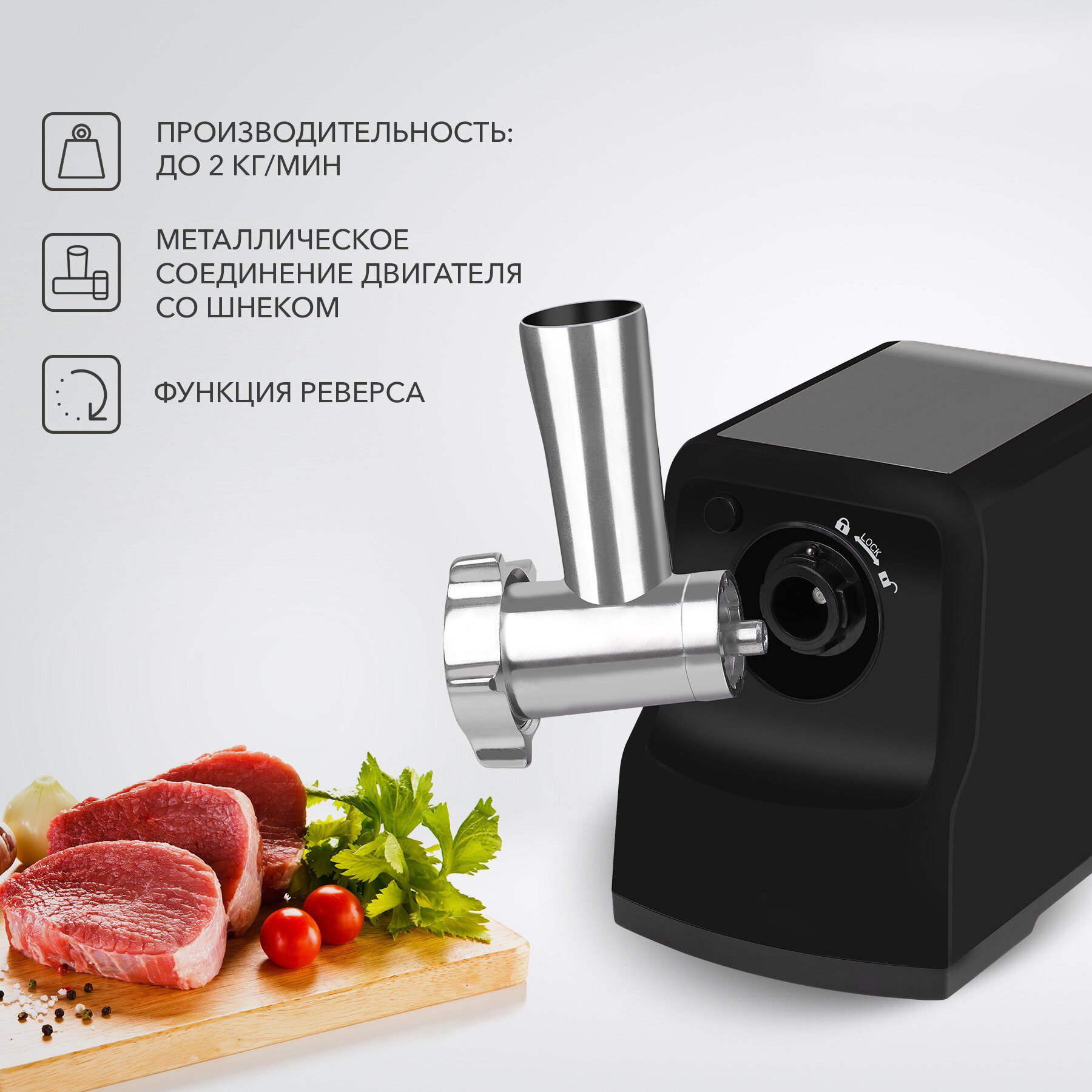| Насадки | диск для фарша / насадка для кеббе / насадка для приготовления колбас |