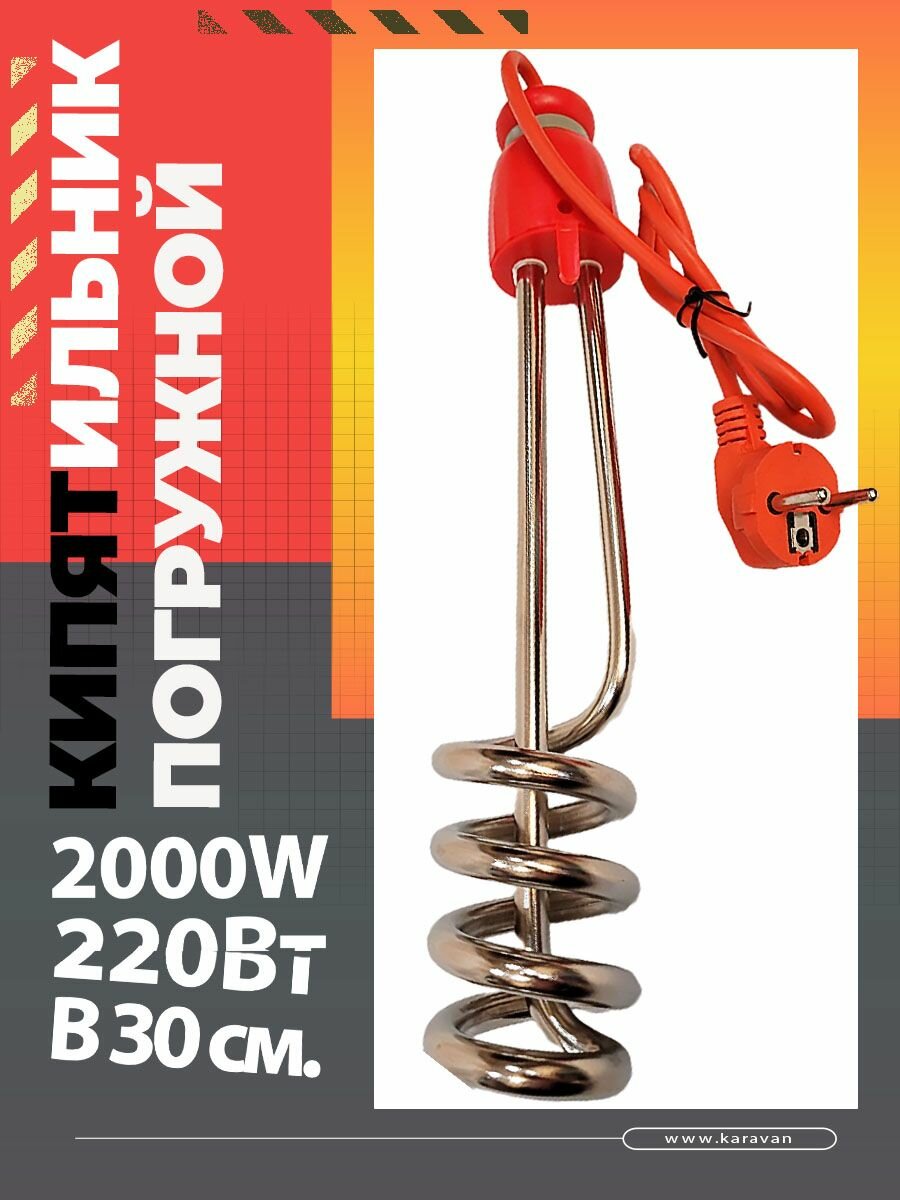 10 цен на Кипятильник большой электрический 2000Вт, 220В, 30см.