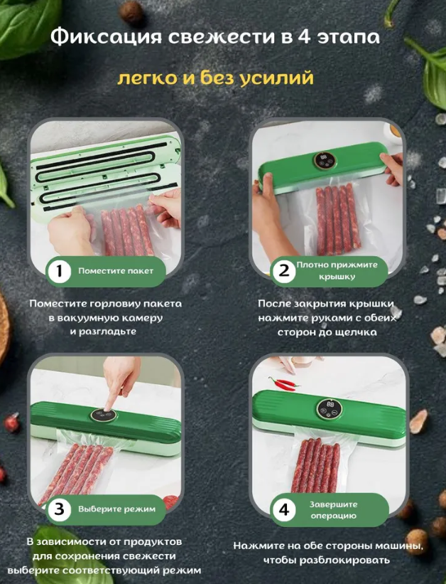 Вакуумный упаковщик кухонный\ Вакууматор для продуктов бытовой\Упаковщик пакетов информация: