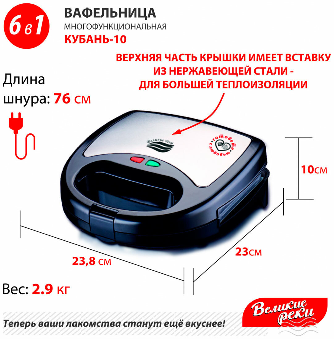 Вафельница Великие Реки Кубань-10 черная, 6 в 1 информация: