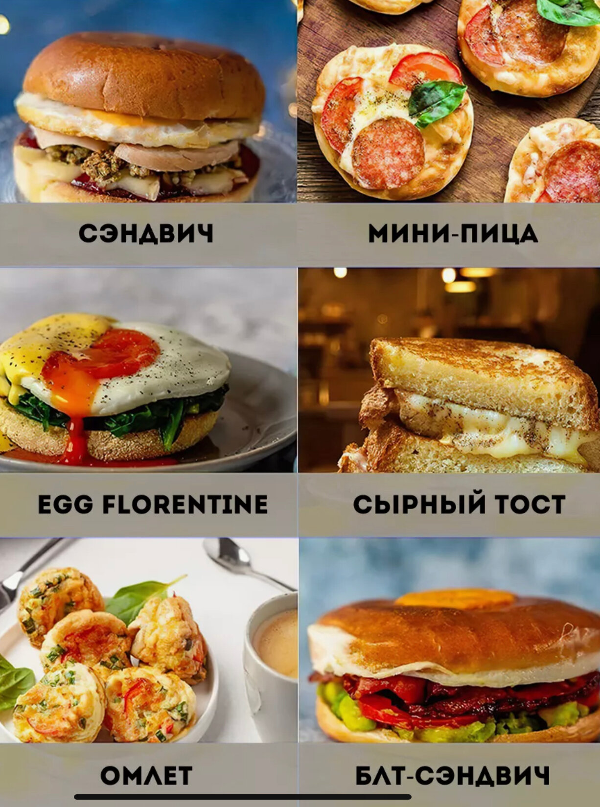 | Вид панели | котлеты / оладьи / омлет / пицца / сырники / сэндвичи |