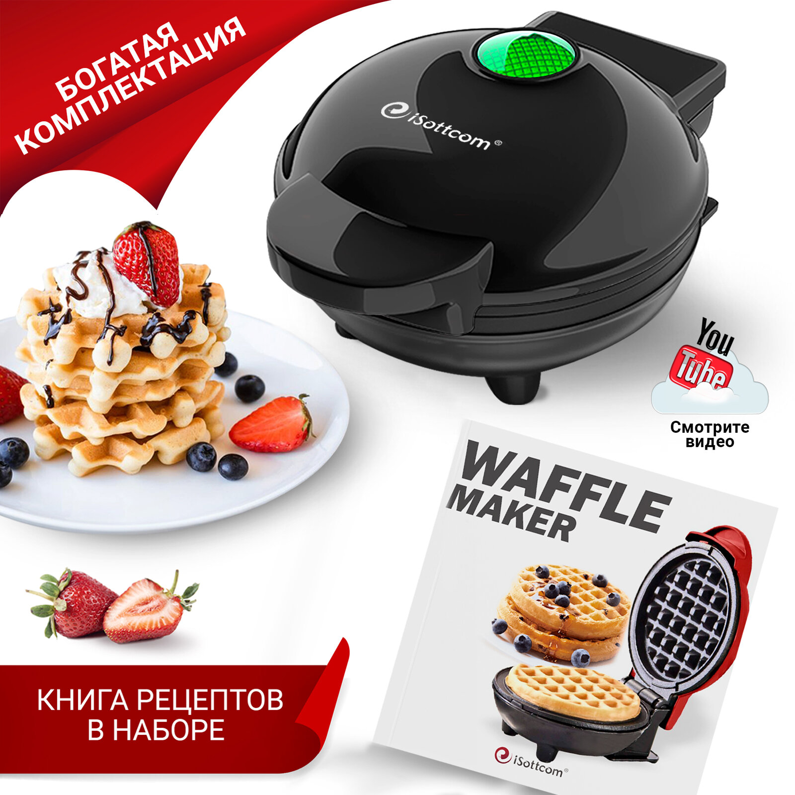 Отзывы на Вафельница электрическая для венских и бельгийских вафель черная iSottcom, 12 x 9 см с книгой рецептов.