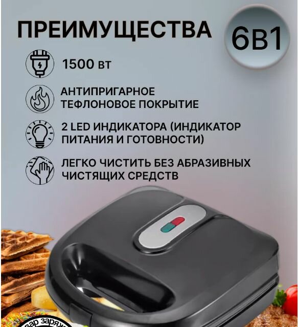 Вафельница электрическая. Мультипекарь 6в1 информация: