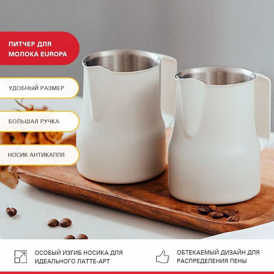 Отзывы на Молочник нержавеющая сталь Europa 750 мл белый MOTTA / Питчер для капучино, кофе/ сливочник для взбивания молока