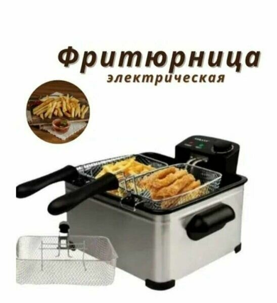 Отзывы на Фритюрница электрическая со съемной сеткой для картофеля 5л. 3200Вт
