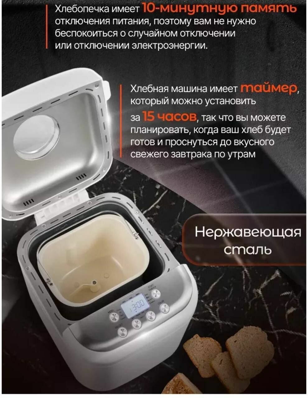 | Количество программ выпечки | 19 |