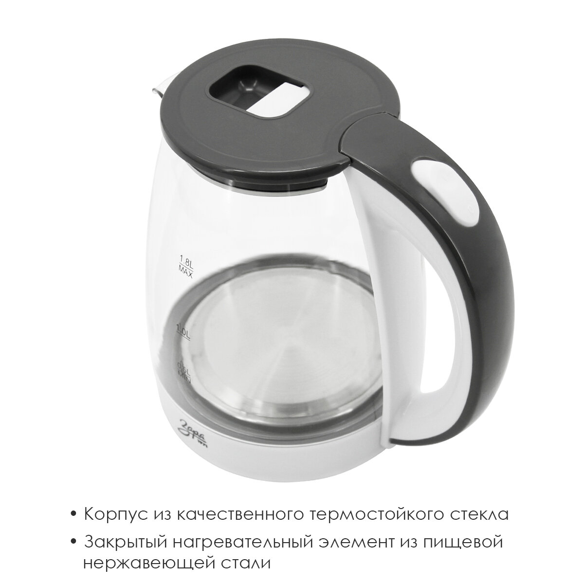 Чайник электрический стеклянный LEX LXK 30010-1, объем 1,2 л, подсветка.
