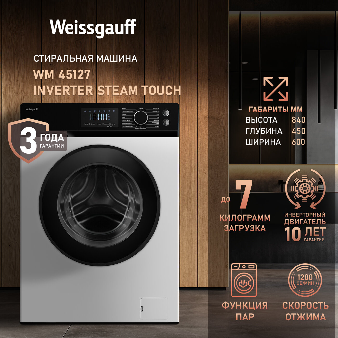 Cтиральная машина с инвертором и паром Weissgauff WM 45127 Inverter Steam Touch информация: