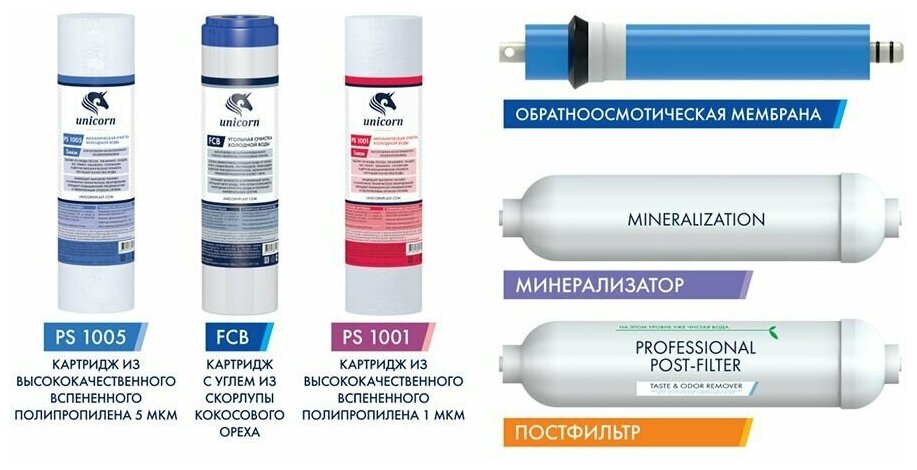 Система обратного осмоса с 6 ступенями очистки воды Unicorn FRO-6 / Фильтр под мойкой с отдельным краном информация:
