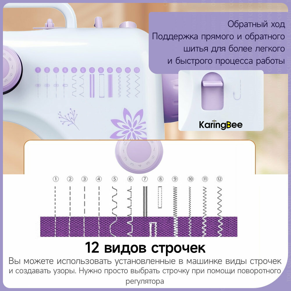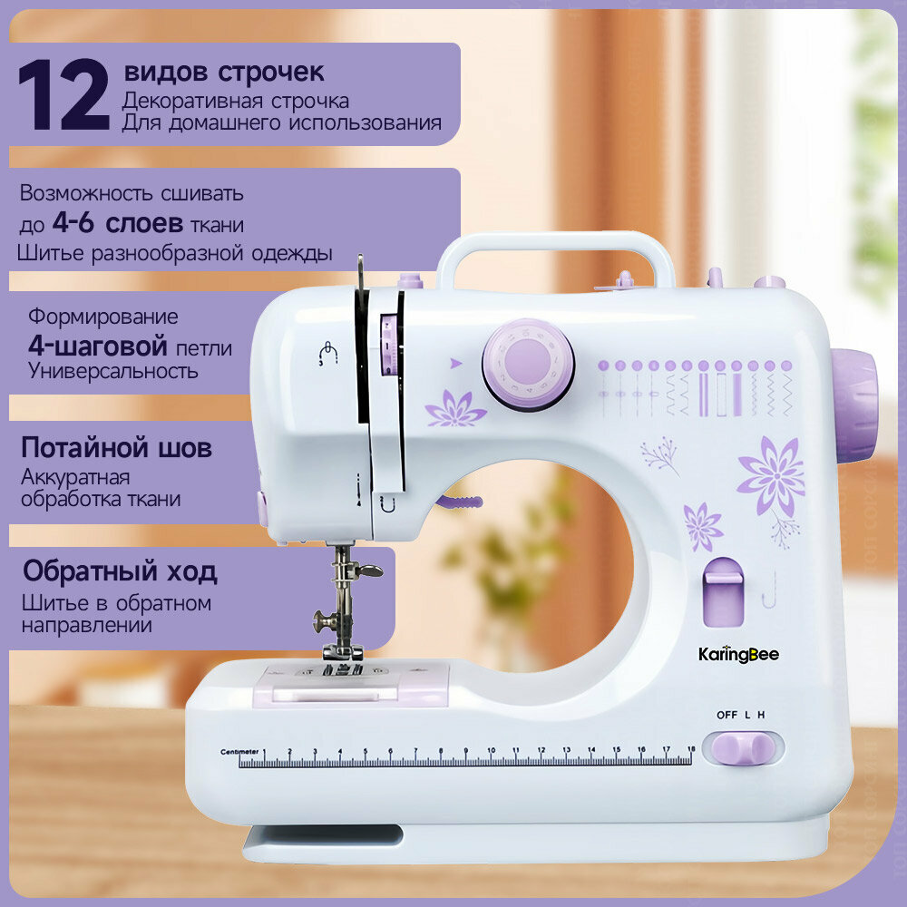 10 цен на Швейная машина KaringBee FHSM-505G фиолетовый+Электрические ножницы, электрическая от сети, реверс, регулировка скорости, нитевдеватель и подсветка,12 видов строчек