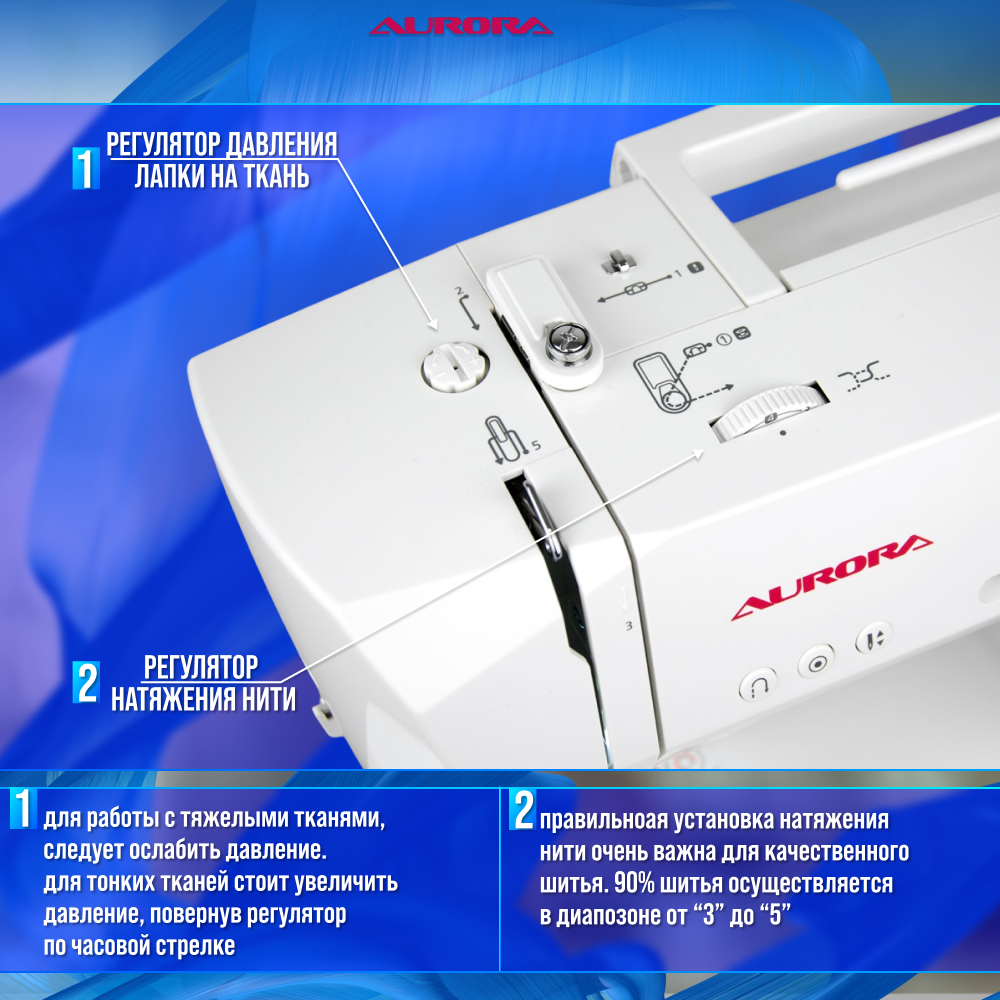 Электронная швейная машина Aurora 590E/ для всех типов тканей / регулировка скорости / двигатель 100 Вт