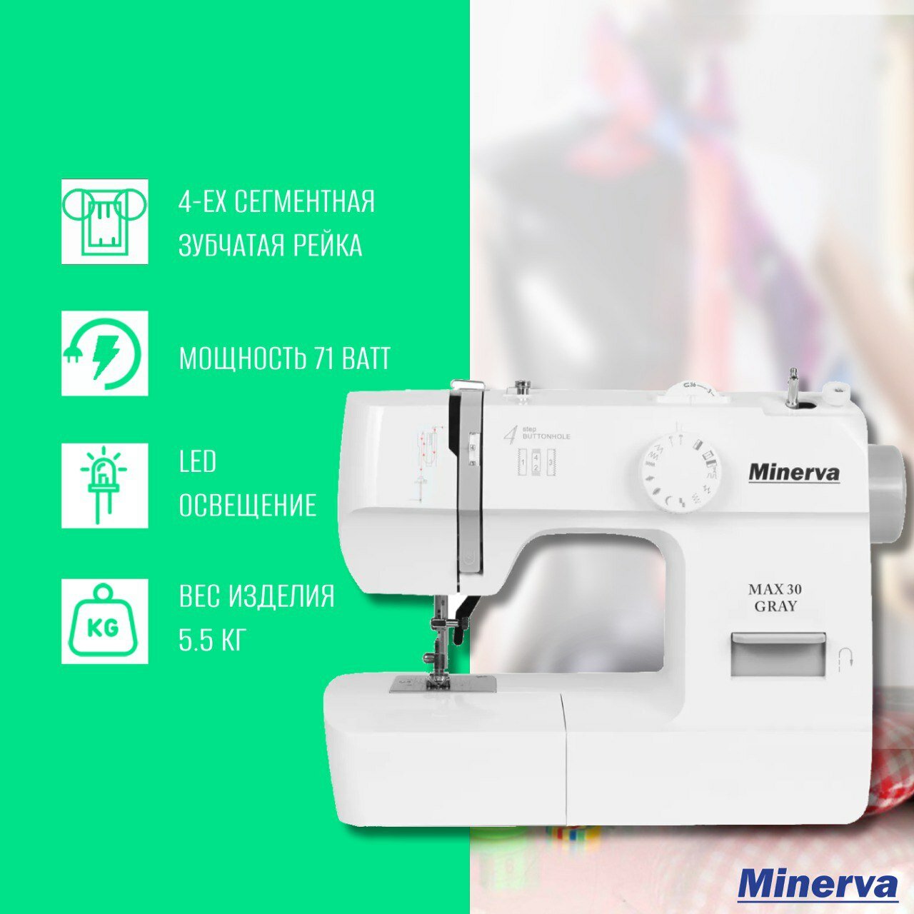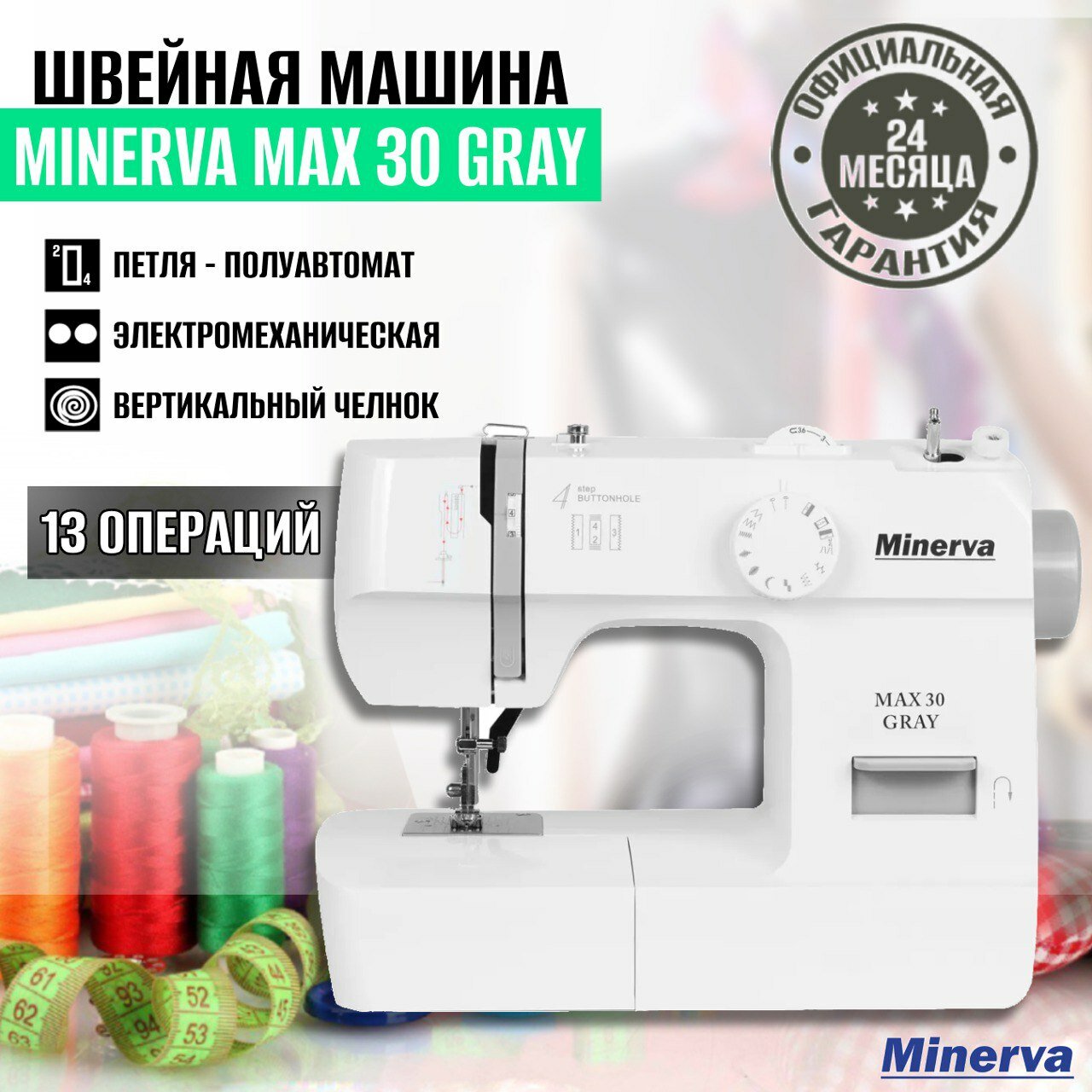 Швейная машина Minerva Max 30 Grey / для всех тканей / петля полуавтомат / вертикальный челнок информация: