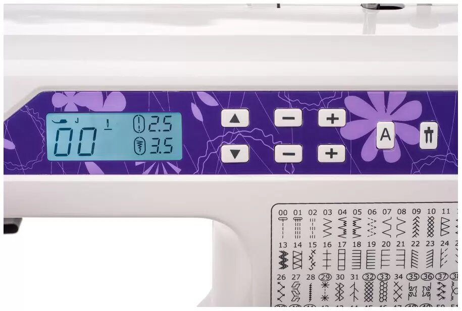 | Особенности | двойная игла, мягкий чехол, подключение к компьютеру, работа с грубыми тканями, работа с тонкими тканями, швейный советник, шитье в нескольких направлениях |