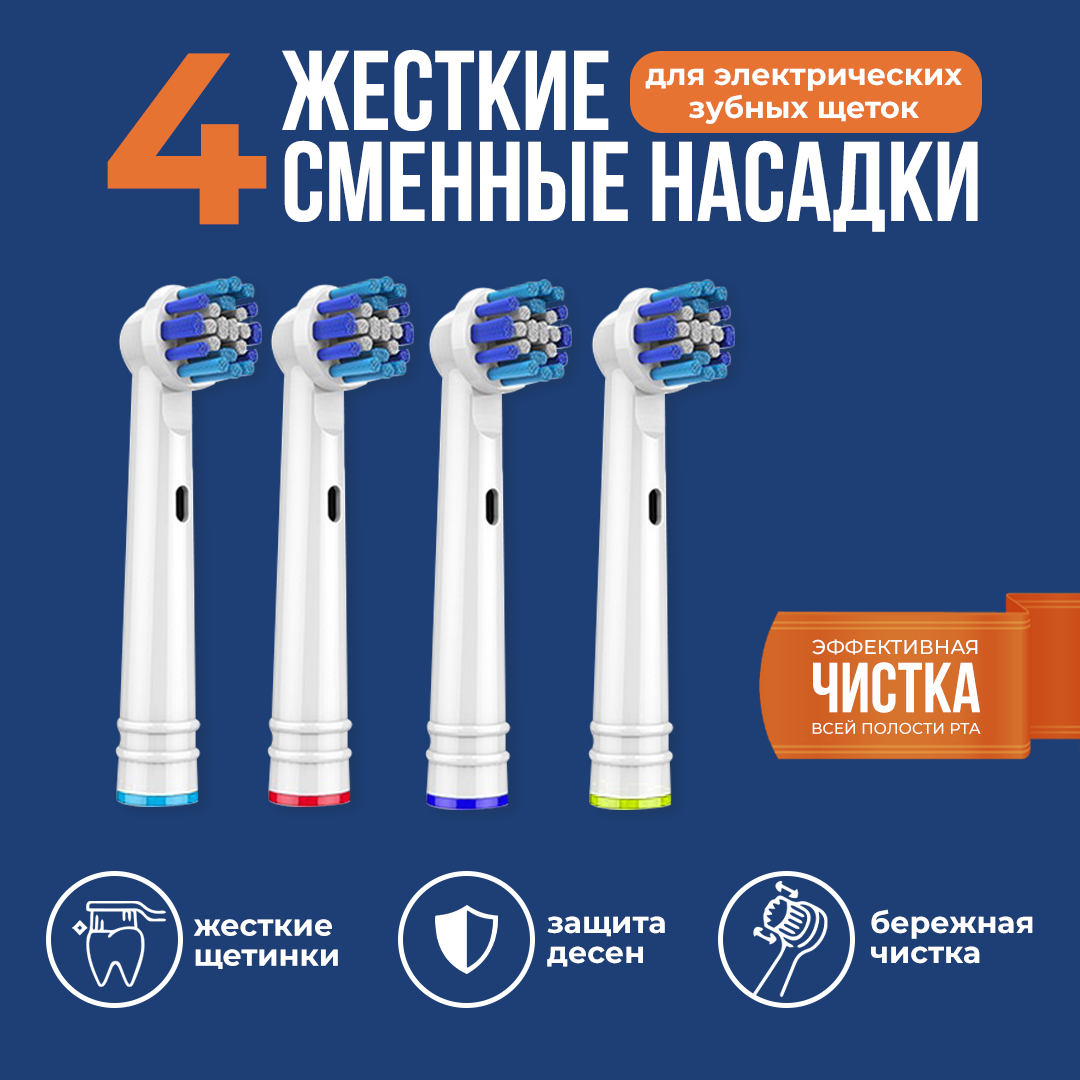 Насадки для электрических зубных щеток 4 штуки / Совместимые с Oral-B Braun / Насадки oral b на зубные щетки жесткие 4 штуки информация: