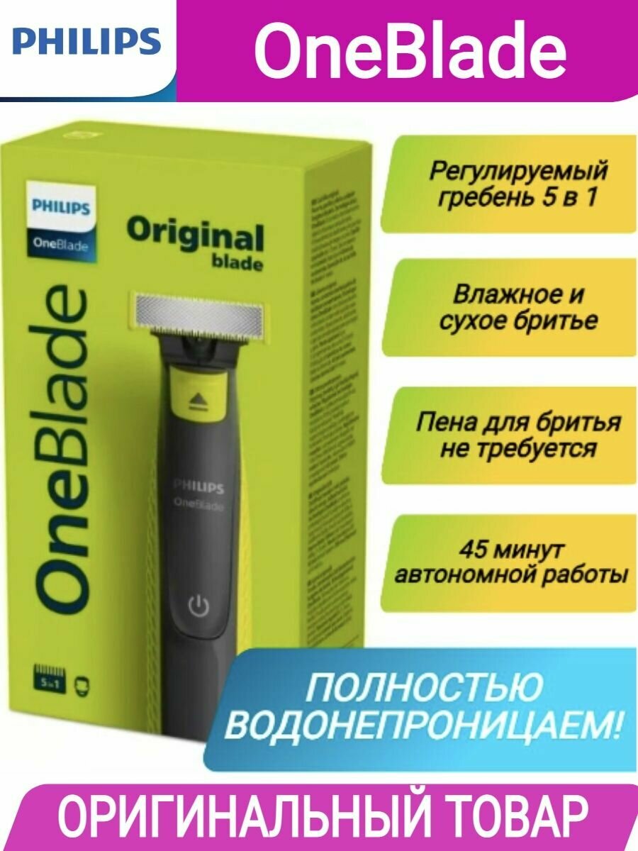 Триммер Philips OneBlade QP2721/20, зеленый лайм/угольно-черный информация: