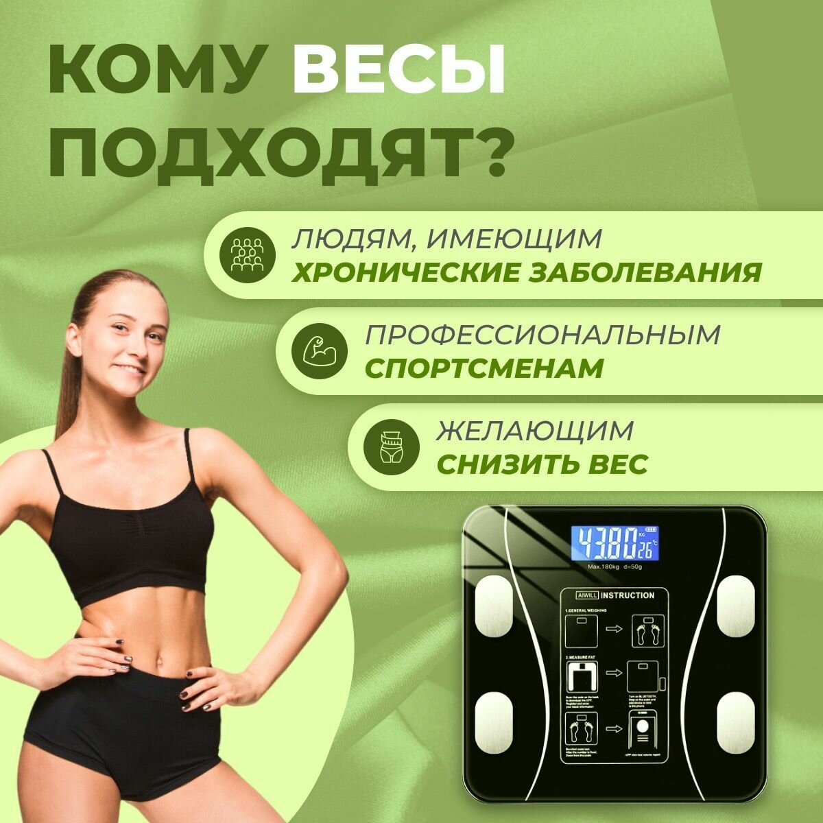 Отзывы на Весы напольные электронные ISPshop, диагностические умные весы, глубокий анализ показателей тела, черные, для похудения