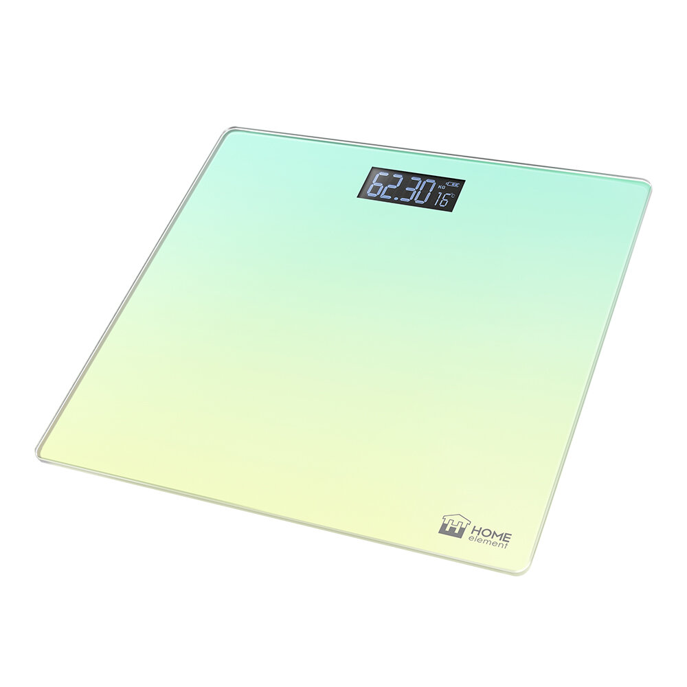 HOME ELEMENT HE-SC906 {new} желто-бирюзовый весы напольные сенсор, встроенный термометр информация: