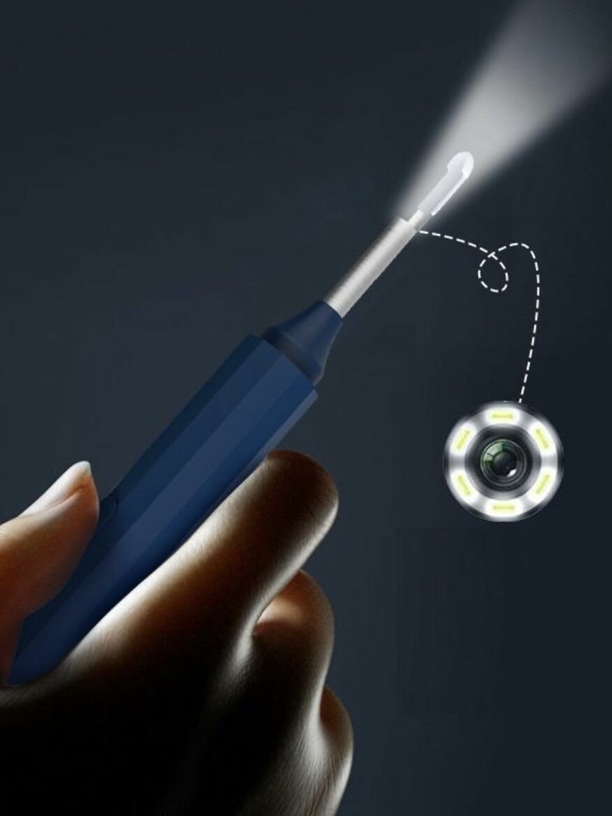 10 цен на Умная портативная ушная палочка со встроенной камерой. Прибор для чистки ушей. Отоскоп синий.
