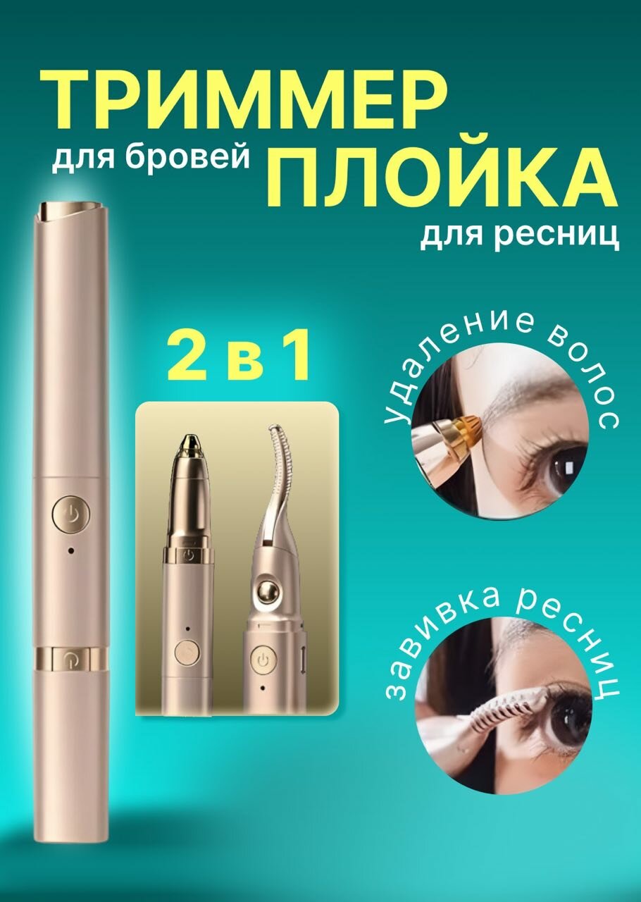 Отзывы на Ручка косметическая 2в1: триммер для бровей и завивка ресниц, золотистая