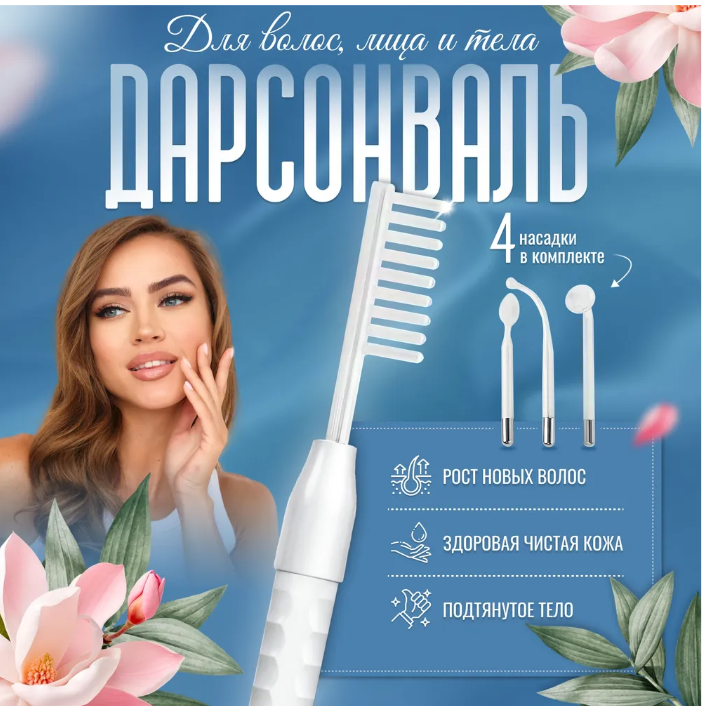 10 цен на Дарсонваль для лица,тела и волос / Импульсивный массажер / 4 сменных насадки