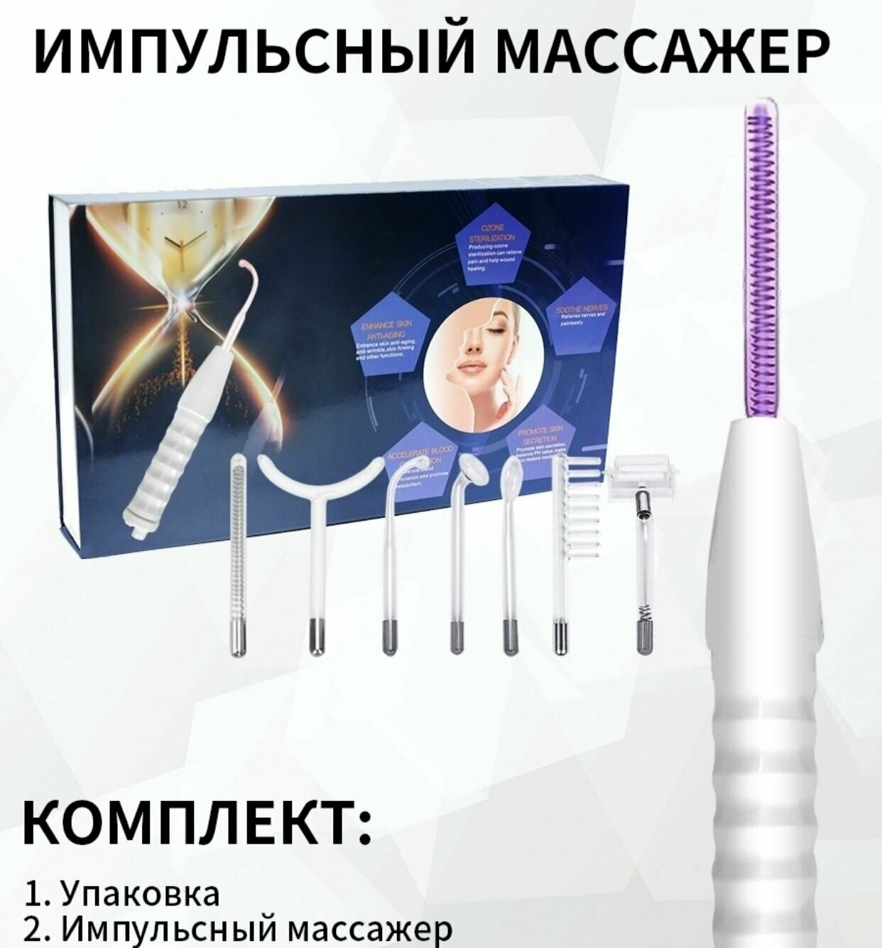 Дарсонваль аппарат для лица тела и волос с 7 насадками антибактериальный массажер импульсный информация: