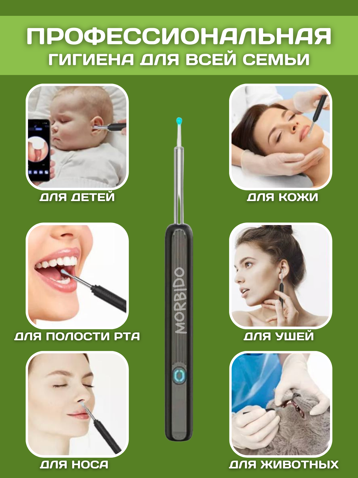 Отзывы на Умная электронная ушная палочка с камерой и 4-мя насадками. Многоразовый прибор для чистки ушей, эндоскоп. Цвет: черный