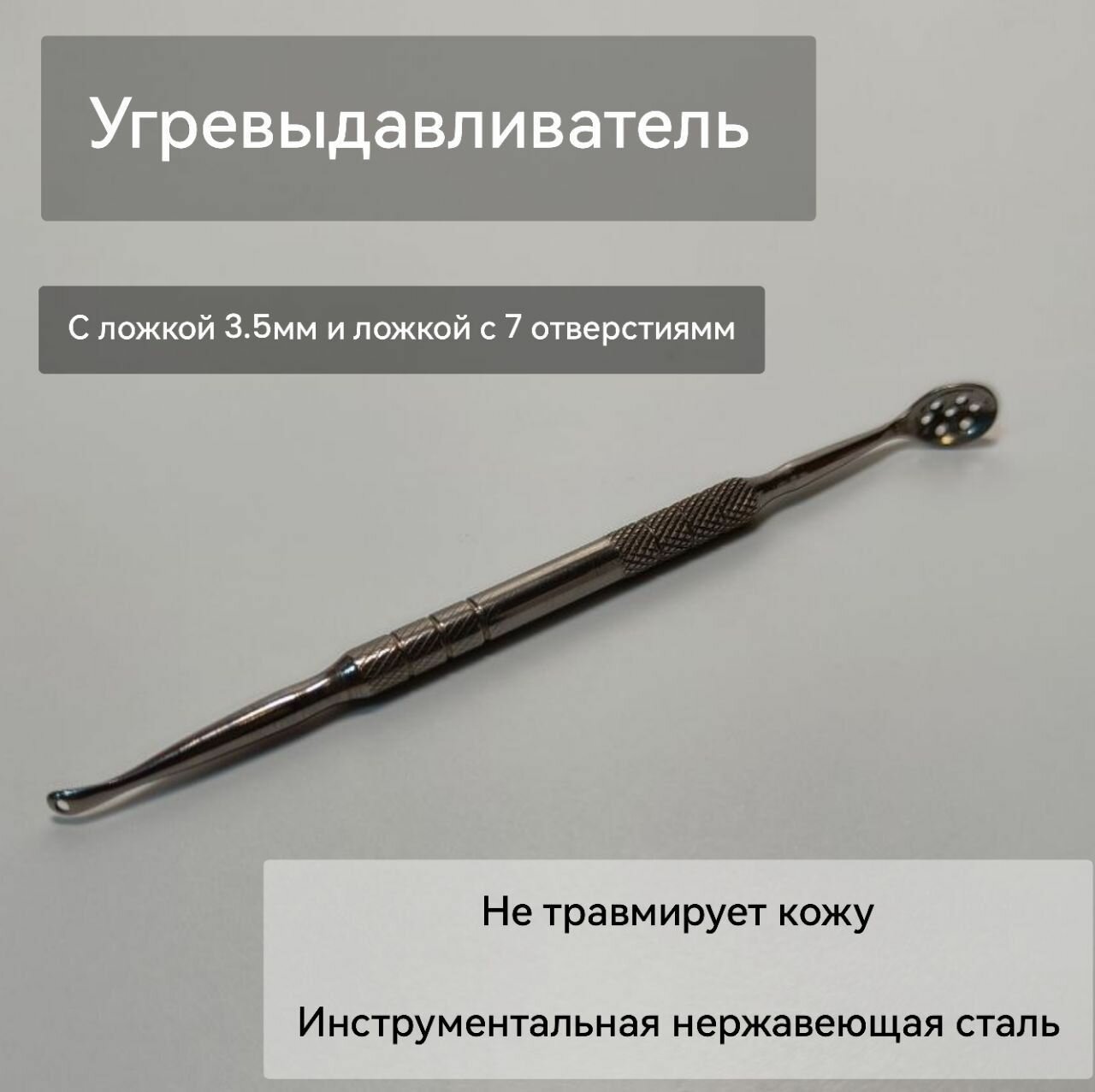 Угревыдавливатель с круглой (3,5мм) и овальной (с 7 отверстиями) ложкой информация:
