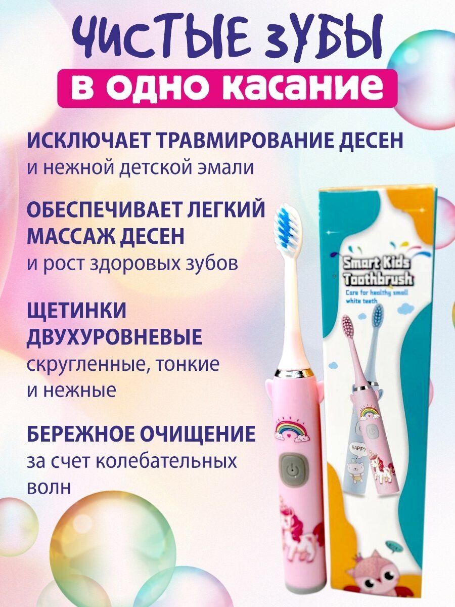 10 цен на Электрическая зубная щетка детская, Розовая ультразвуковая электрощетка для детей от 3х лет на батарейке АА с доп. насадками