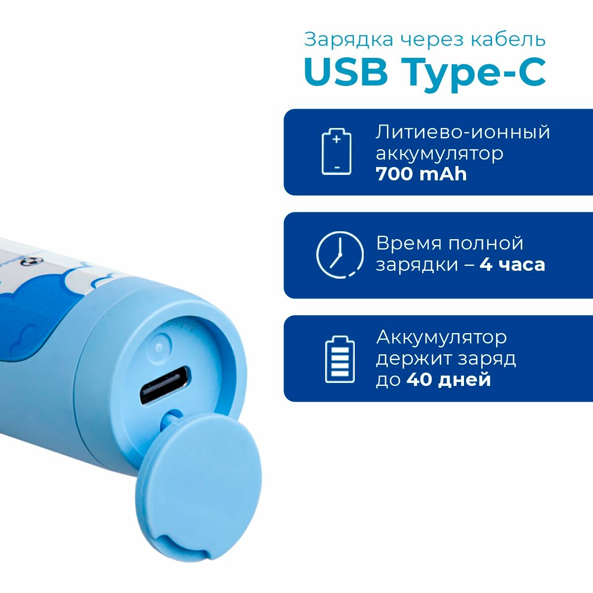 Электрическая детская звуковая зубная щетка Revyline RL 055, голубая 7+
