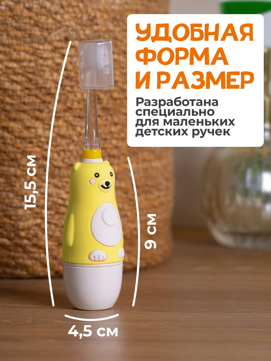 10 цен на Электрическая звуковая зубная щетка детская BANNER Happy Bear с аккумулятором. Зарядная док-станция + 2 насадки в комплекте
