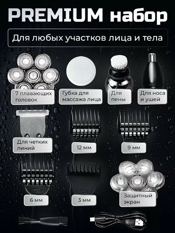 | Особенности | быстрая зарядка / дисплей / для чувствительной кожи / насадка для стрижки волос / триммер |