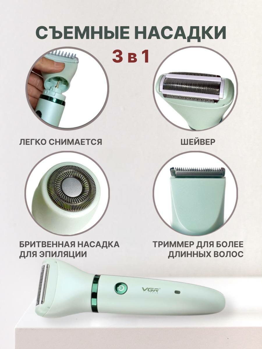 Эпилятор аккумуляторный женский 3 в 1 VGR VOYAGER (зеленый, белый)
