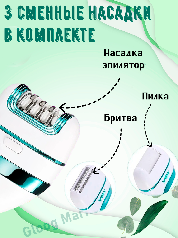 Эпилятор аккумуляторный женский 3 в 1 VGR VOYAGER (зеленый, белый)