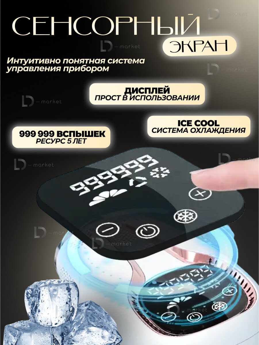 Фотоэпилятор лазерный IPL c охлаждающим эффектом для для лица, тела, зоны бикини / Фотоэпилятор домашний, женский и мужской для всего тела информация: