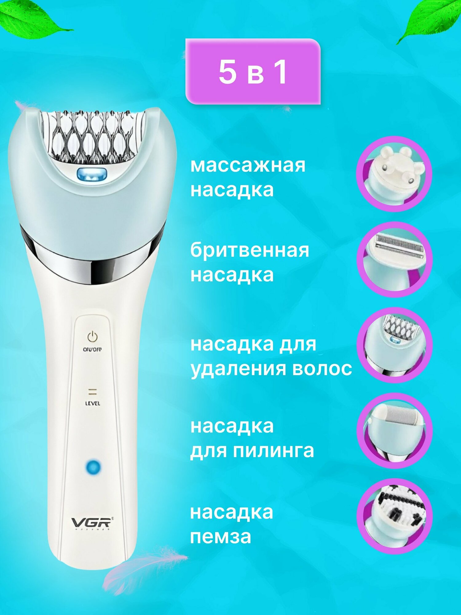 Эпилятор 5 в 1 женский электрический беспроводной информация: