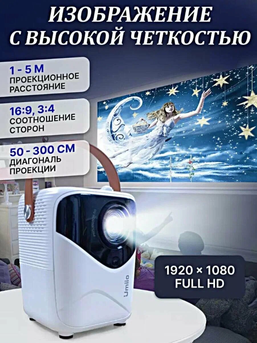 Проектор Umiio Q1 Full HD Android TV, Портативный проектор, Проектор Wi-Fi 1080p для дома, дачи, офиса, Белый информация: