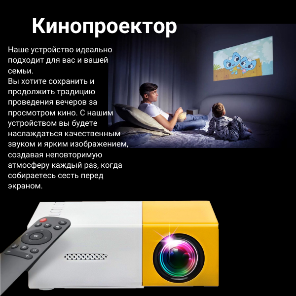 Мини проектор 4К с высоким разрешением 1920х1080 для фильмов и мультфильмов
