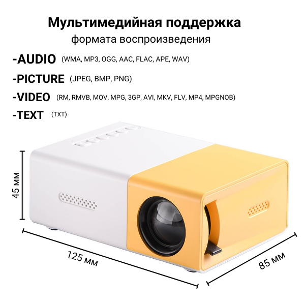Кинопроектор мультимедийный UNIC мини YG-300 Проектор светодиодный для просмотра фильмов Домашний кинотеатр информация:
