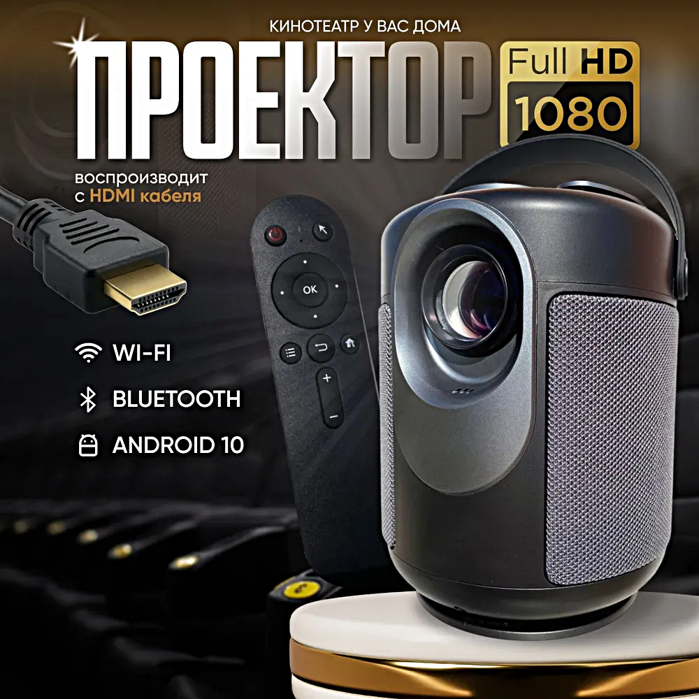 Проектор HY350 Full HD Android TV, Портативный проектор 5G, HDMI, Проектор мультимедийный Wi-Fi 1080p, Cерый 10 965 ₽
