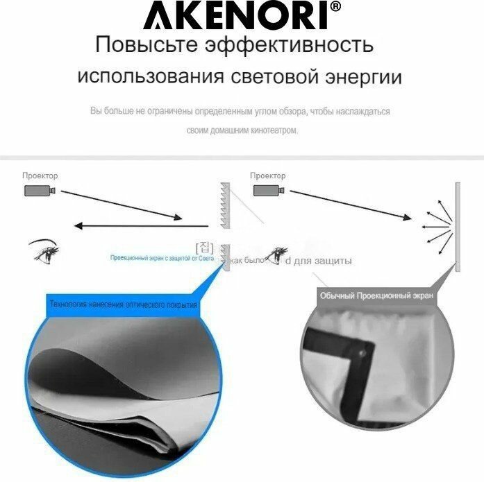 Экран для проектора светоотражающий серый Akenori 003D 100 дюймов 16:9 " липучки+пакет 2 573 ₽