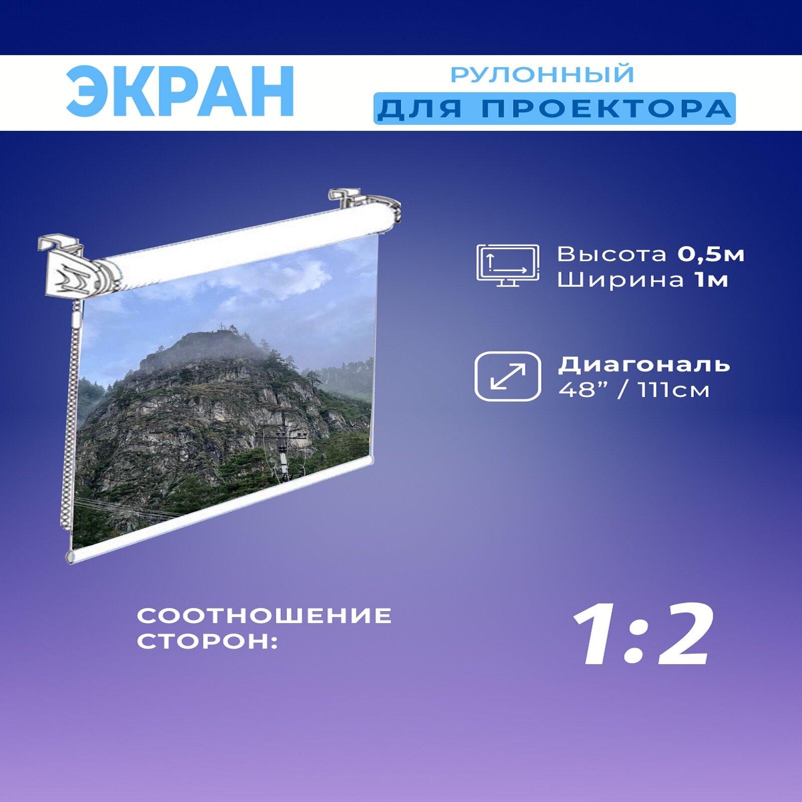 Экран для проектора рулонный белый 0,5х1м информация: