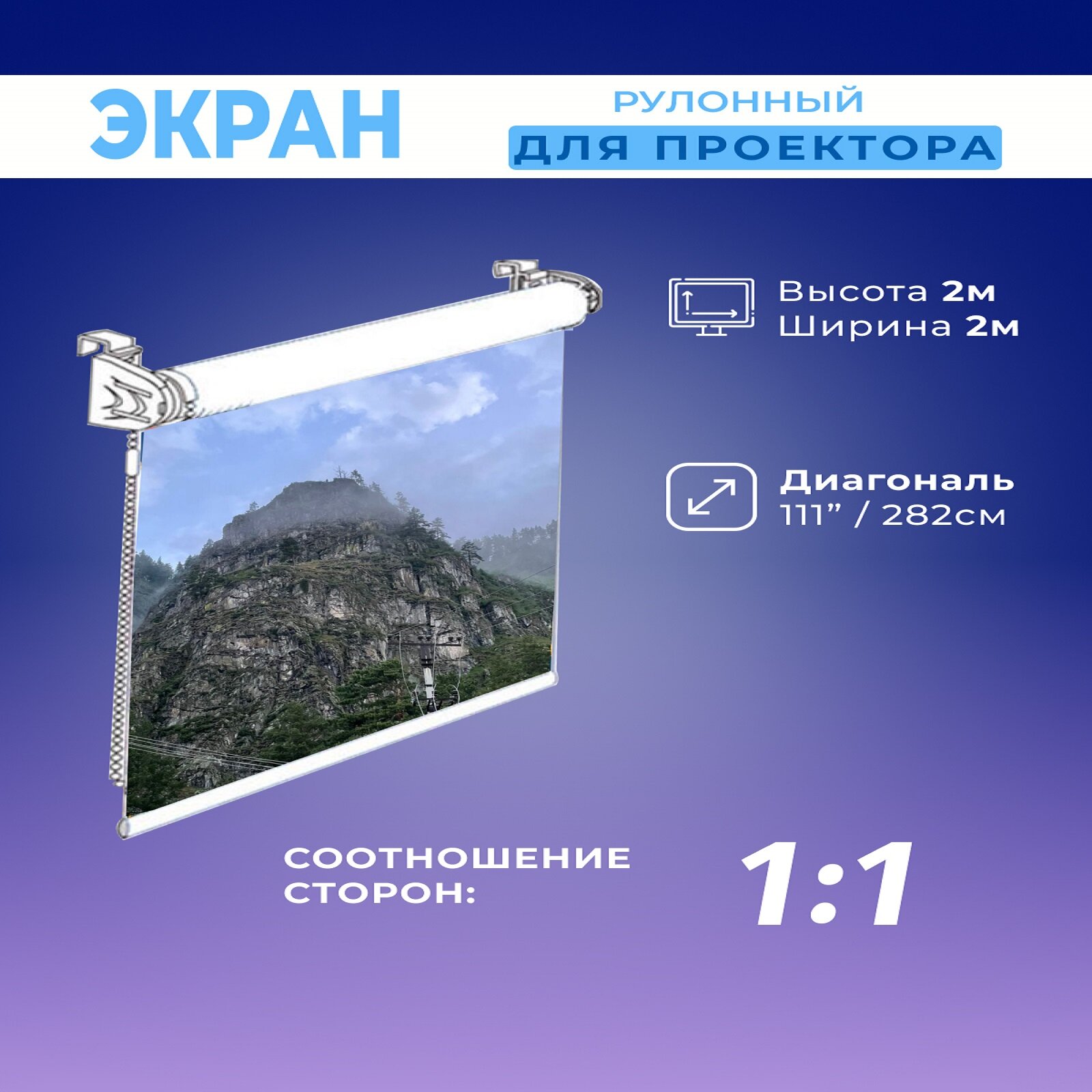 Экран для проектора рулонный белый 2х2м информация: