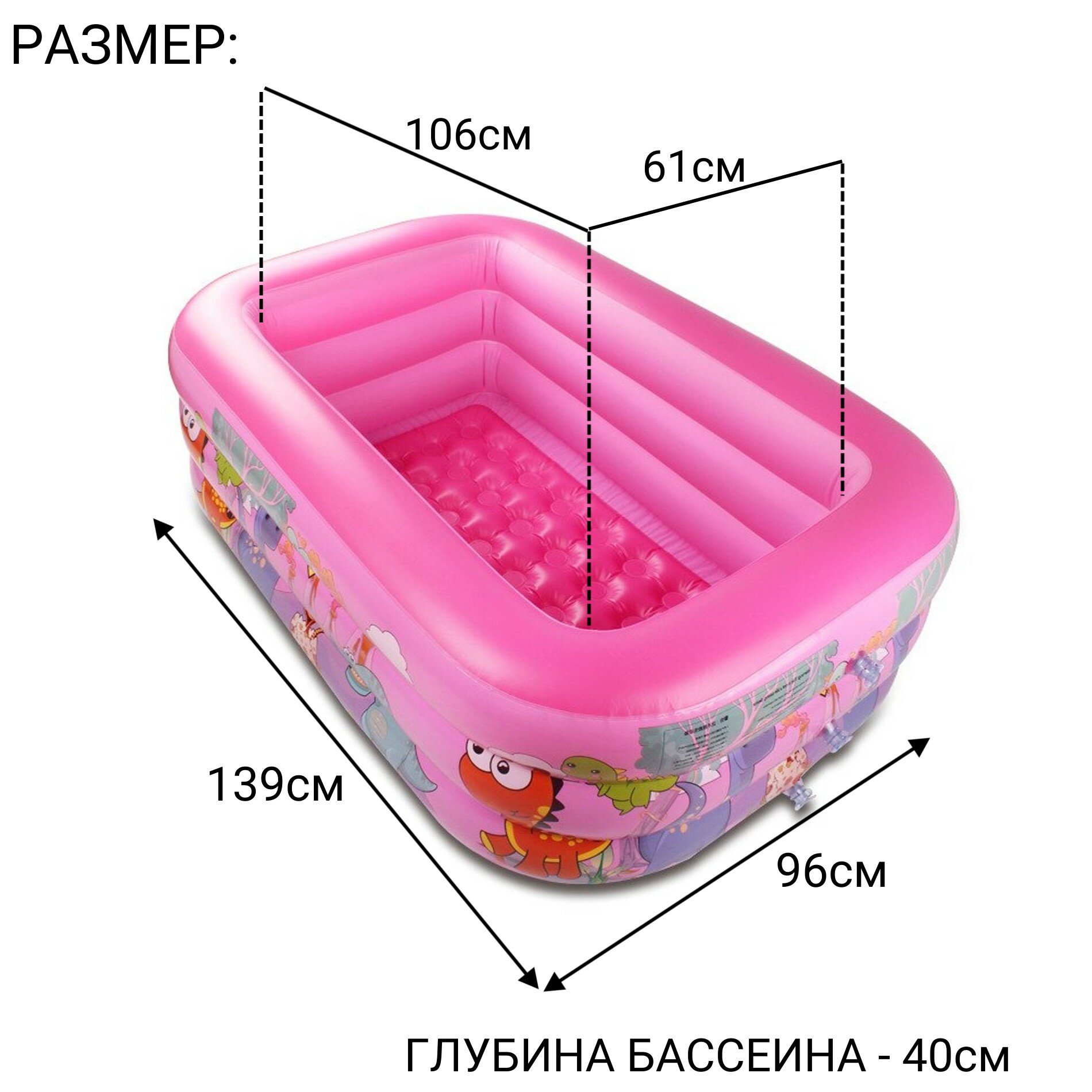 Бассейн надувной 139*96*43 см /розовый/ информация: