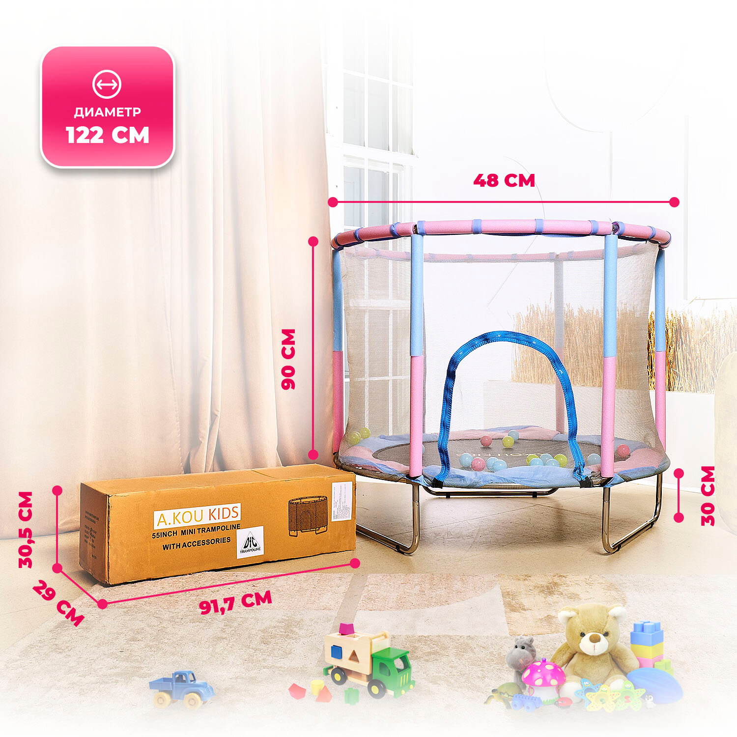 Батут детский DFC A.KOU KIDS 48" (122 см) с сеткой информация: