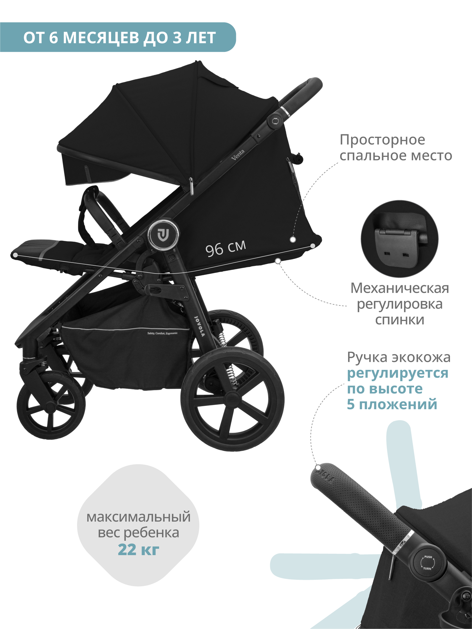 Отзывы на Коляска прогулочная Jovola Venta всесезонная, складная, черный