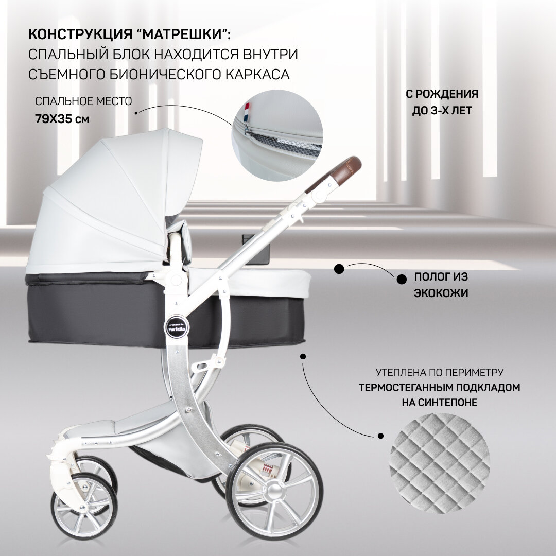 Детская коляска-трансформер Aimile Original PRO, для новорожденных, экокожа, люлька для новорожденных, 2 в 1, цвет белый 23 050 ₽